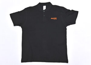 Elegant das Maxxis-Polohemd in Größe „XL“ – Schwarz mit echtem Logo-Stick in orange. Gleich für zwei Gewinner aber erstmal nur diese Größe, andere Bekleidung und andere Größen gibt es an anderen Tagen.